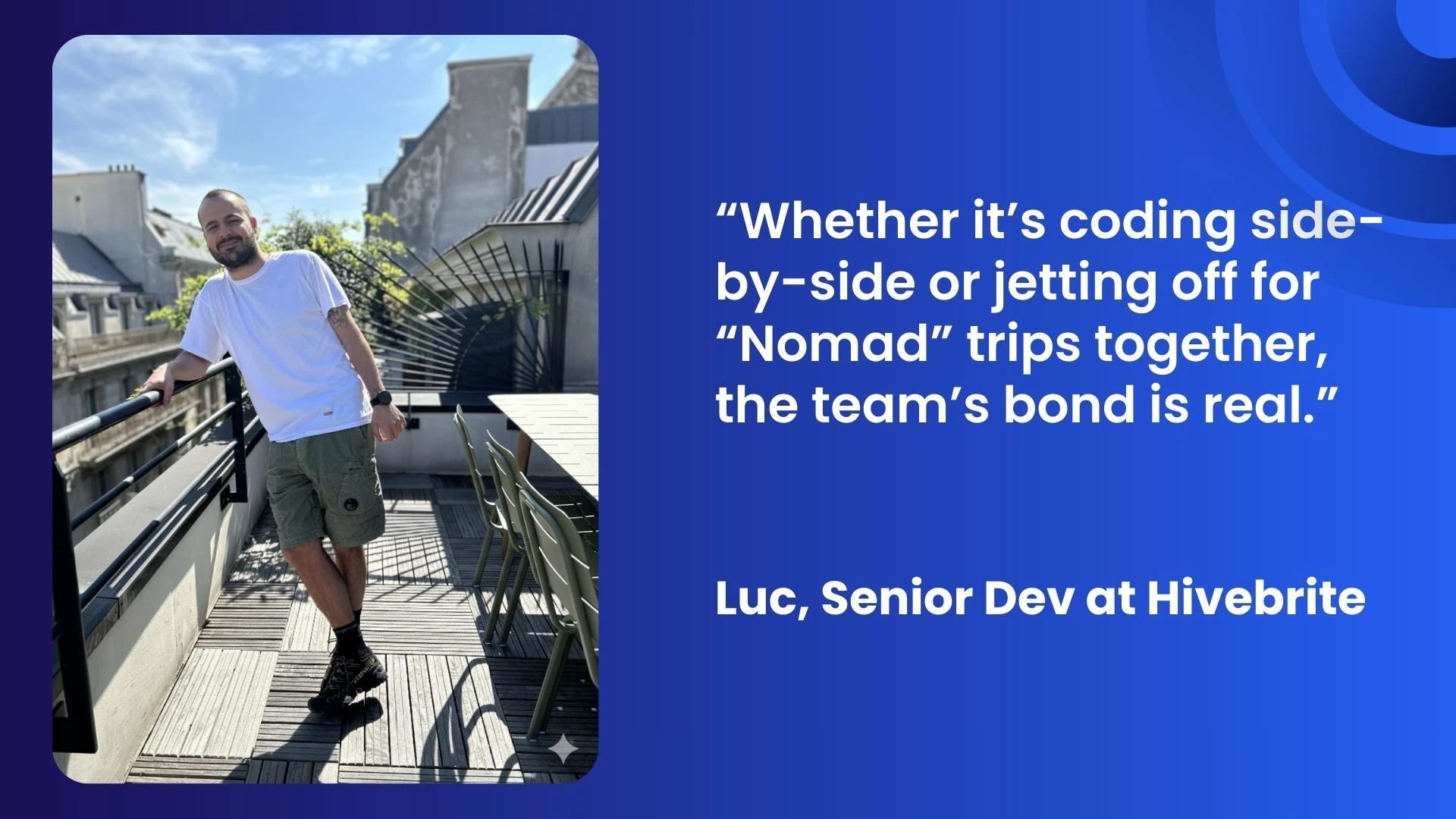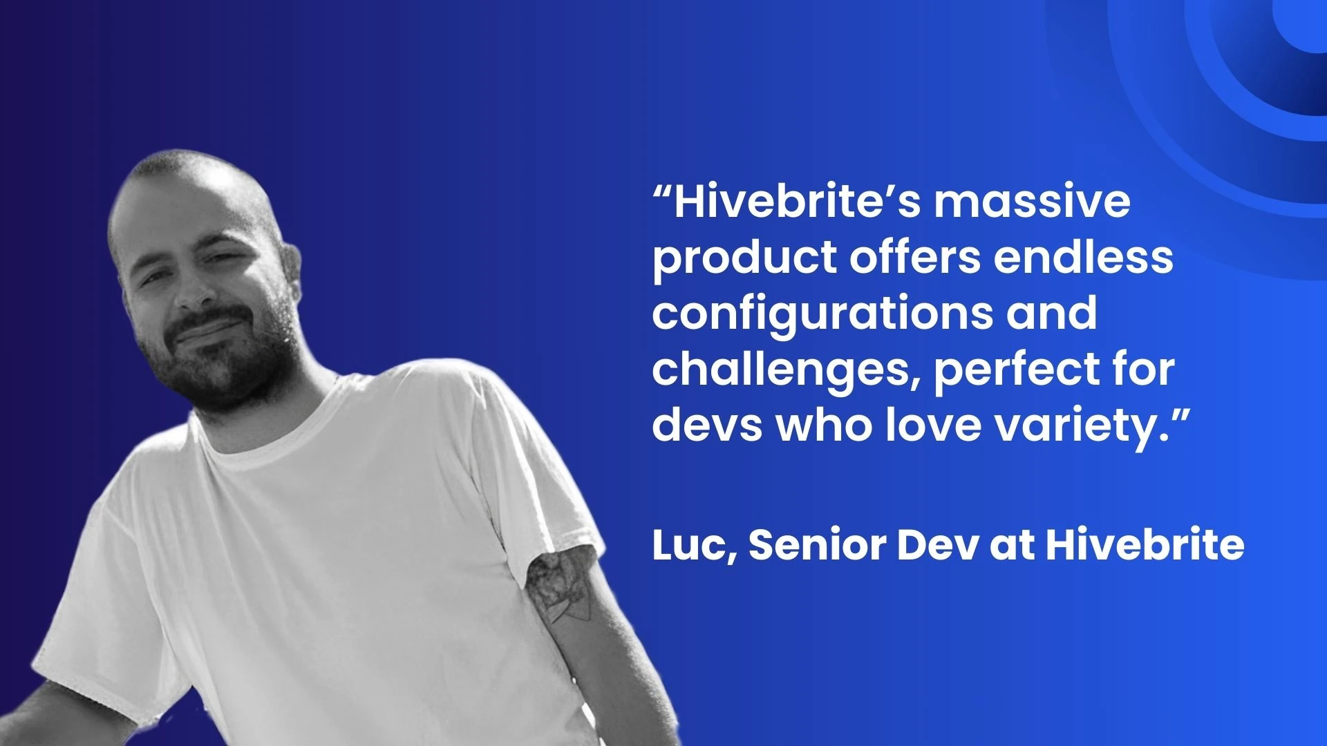 Thinking of applying? Luc’s got some tips: “Bring a solid technical foundation - OOP knowledge is key - and a love for getting your hands dirty. Be proactive, propose ideas, and thrive on autonomy.” Hivebrite’s massive product offers endless configurations and challenges, perfect for devs who love variety. With some legacy code and new programming languages on the horizon (AI’s shaking things up!), you’ll need to be adaptable and eager to experiment, which makes the job very exciting.